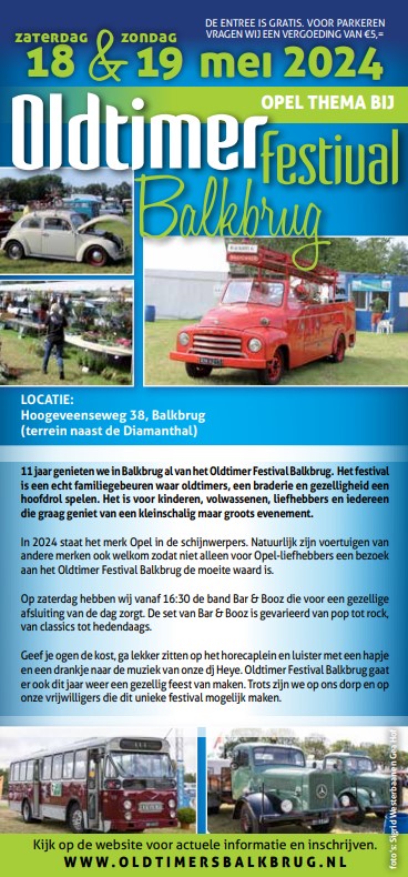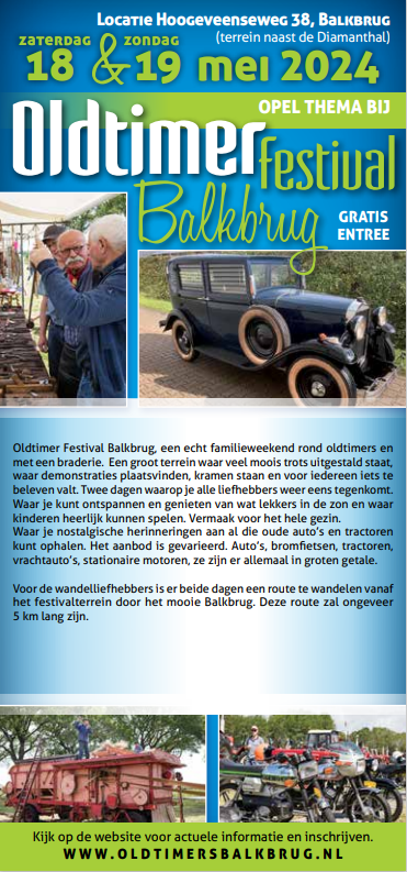 Wij hebben 18 en 19 mei de oldtimerdagen in Balkbrug.